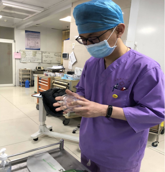 在抗疫期间,董亚楠学长为科室组长,带领科室的同事一起抗疫,指导他们工作。他们每个人除了照顾病号之外还要进行科室里每个角落的消毒杀菌工作。每个人都没有休班,上完白班再上夜班,每个人都处于在连轴转的工作作息,而且要随时保持24小时待命的状态。董洁说起她印象深刻的一件事是疫情第一天人手不够,她主动申请了白班加夜班,每天要工作15个小时。并且在休息时,他们也没有住宿地方,只能住在留观病房里。