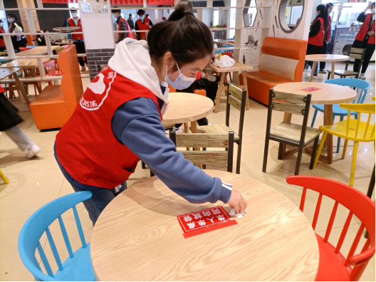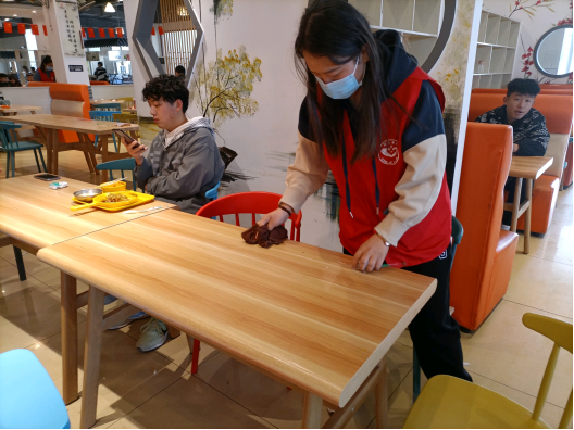 本次活动,所有同学分为两组,分别负责餐厅一二楼,每层楼又对组内成员进行更详细的划分,分完组同学们马上都投入到工作中。