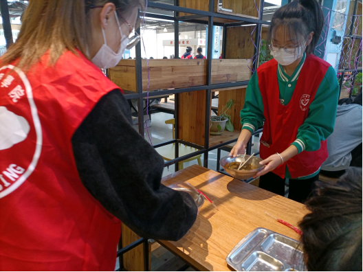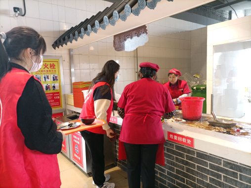 在整个帮厨过程中,志愿者们穿梭在人潮涌动的食堂里,在为同学提供了便利和帮助的同时。哪里有需要,哪里有就他们忙碌的身影,他们用付出展示了什么叫不求回报的志愿服务,他们用行动诠释着雷锋精神。