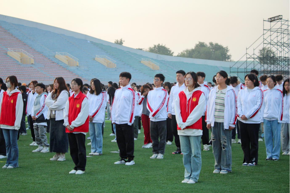 “仪式第一项, 升国旗,奏国歌!”伴随着义勇军进行曲的旋律,全体师生庄严肃立,齐唱国歌,行注目礼。