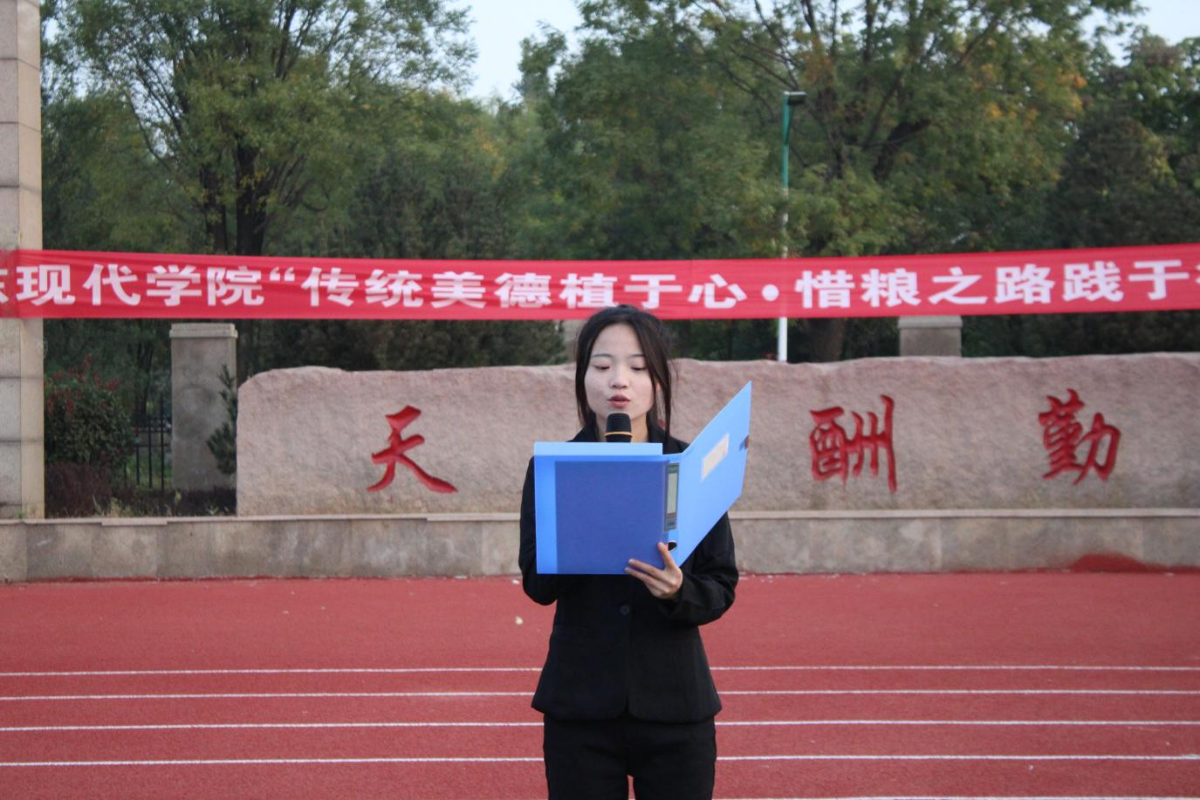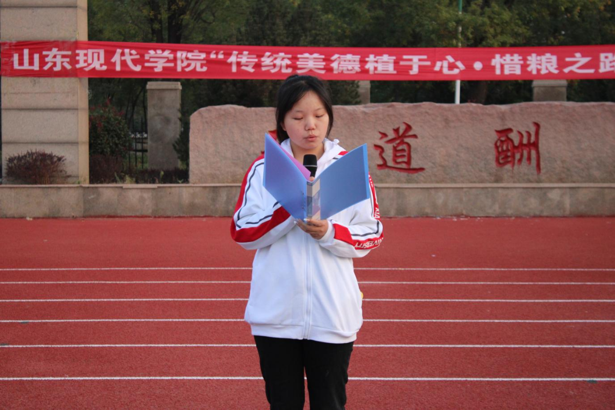 为培养勤俭节约的传统美德,引导全校同学树立起珍惜粮食的意识,加深同学们对粮食问题的关注,由共青团山东现代学院委员会主办,护理学院团总支承办的“传统美德植于心·惜粮之路践于行”升旗仪式于10月16日在新体育场举办。