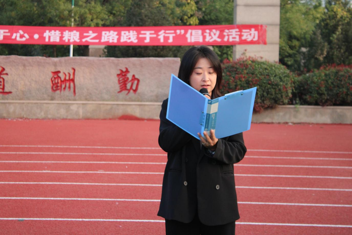 仪式第二项,由学生代表闫畅同学作为领誓人带领大家宣读惜粮誓词,并发起“爱惜粮食、杜绝浪费、从我做起”的倡议。