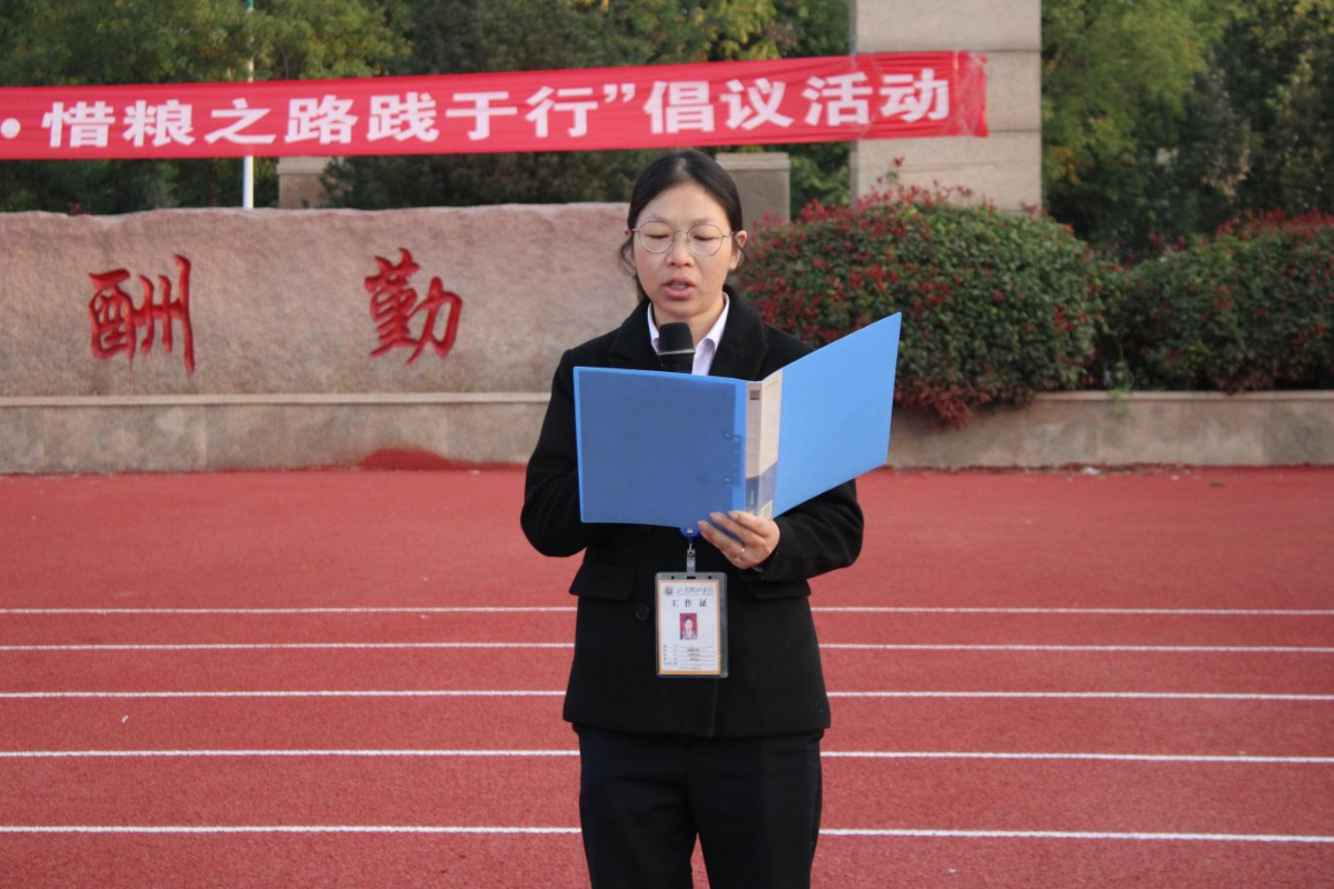 仪式第三项,由学生代表张超欣同学发言,她感情真挚地分享了自己对惜粮的看法,认为惜粮之道是我们每个人的责任和义务。