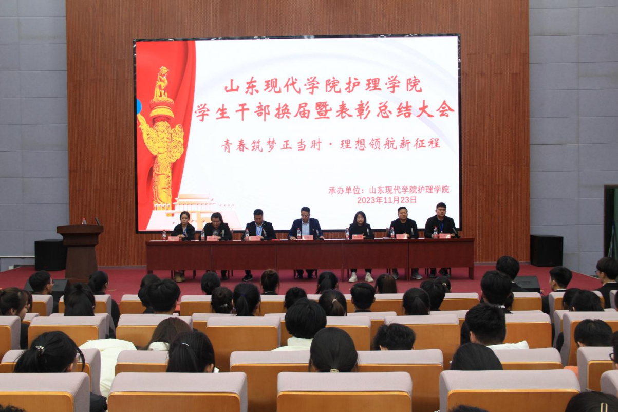 《中共中央国务院关于加强和改进大学生思想政治教育的意见》中指出:“高校学生会是党领导下的大学生群众组织,是加强和改进大学生思想政治教育的重要依靠力量”。近期,由共青团山东现代委员会主办,护理学院团总支承办的“青春筑梦正当时·理想领航新征程”学生干部换届暨表彰总结大会在图书馆报告厅举办。