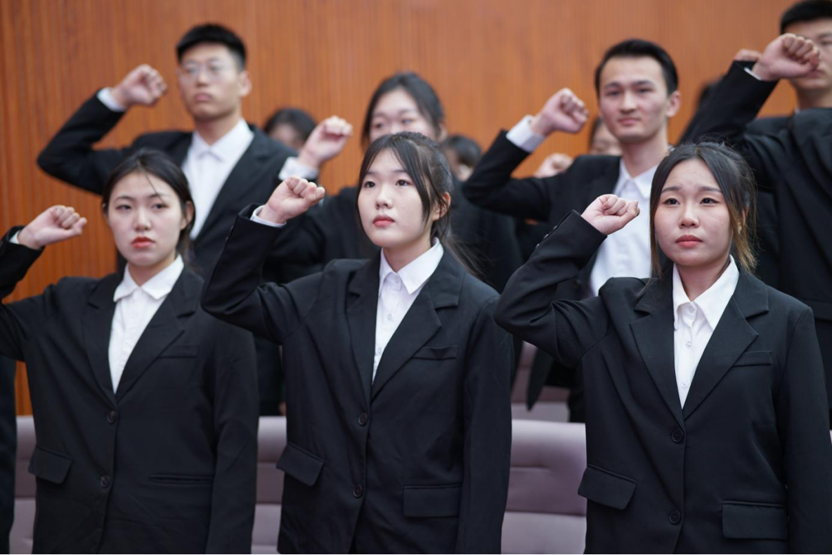 护理学院自律委员会执行主席韩昆宏妍同学带领学生会全体成员进行宣誓。