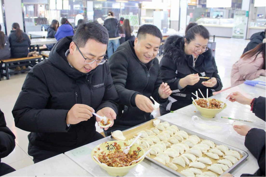 活动开始,大家积极参与,亲自动手,一起调制“健康馅”,擀出“幸运皮”,捏出象征幸福团圆的饺子。