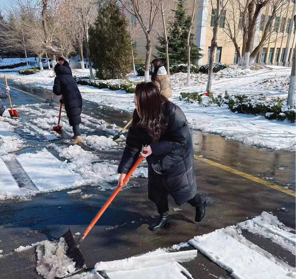 一场风雪,亦是新的开始,在学院师生的共同努力下,学院周边的积雪被迅速清扫干净,取而代之的是一条条“暖心通道”。此次清扫冰雪行动,既保障了春季开学和校园交通安全,又展现了学院师生的责任感和无私奉献的劳动精神。让我们一起走进新学期,开启逐梦新篇章!