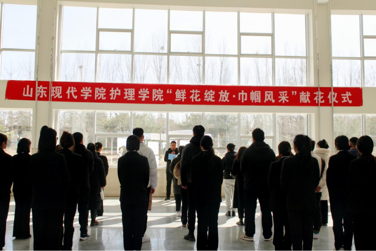 三月芳菲,巾帼同行。为了向杰出的女性代表致敬,激励更多女性勇敢追求梦想,为社会的发展与进步贡献自己的力量,由共青团山东现代学院委员会主办,护理学院团总支承办的“鲜花绽放·巾帼风采”献花仪式于三八妇女节当日在博学楼感恩广场举行。