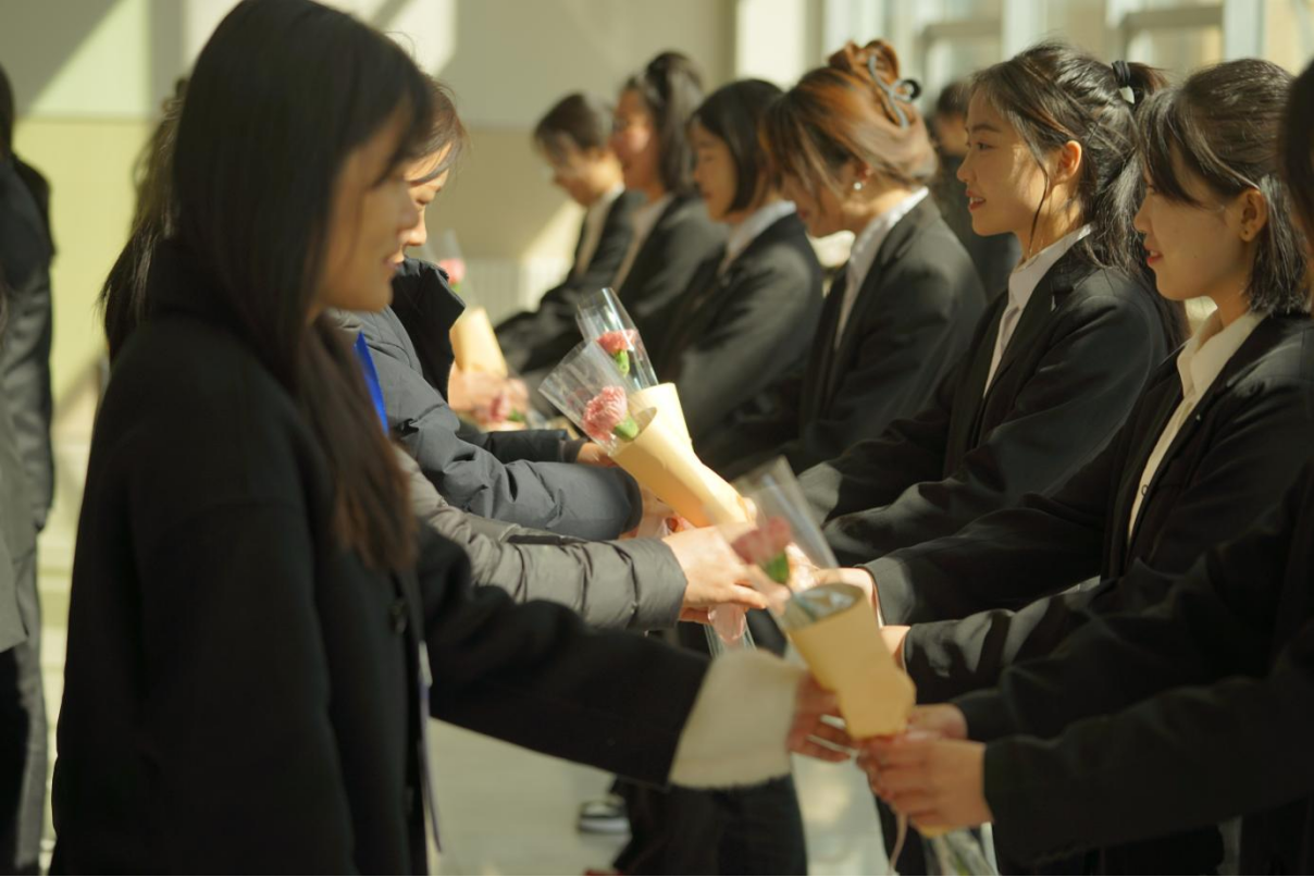 献花者手持鲜花,将鲜花递交给教师们,以此来表达对她们的谢意。鲜花作为这个节日的象征之一,更进一步地增添了节日的氛围。