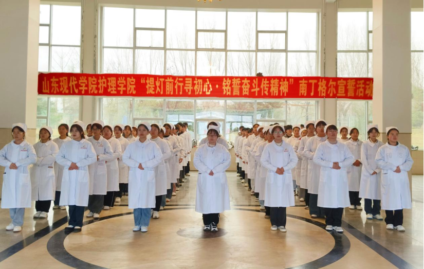 为了重温南丁格尔誓言,深刻领悟护理事业的初心与使命,由共青团山东现代学院委员会举办,护理学院团总支承办的“提灯前行寻初心•铭誓奋斗传精神”宣誓活动于3月25日在博学楼大厅举行。