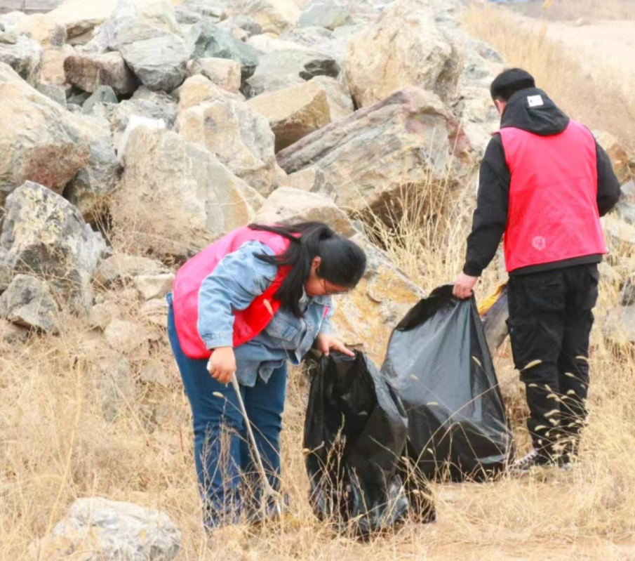 随后,志愿者们在黄河岸边开展实践活动,志愿者们通过捡拾垃圾、清理河道周边的垃圾,引导居民对黄河环境问题的关注,不断增强自身的环保意识,以实际行动为保护黄河做出贡献。