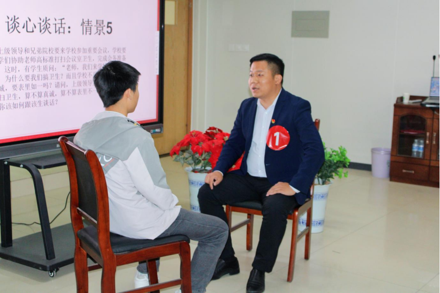 谈心谈话环节,辅导员们与学生展开深入且有效地交流,充分彰显出对学生的教育引导能力、解决实际问题的能力。学生评委以独特的视角和感受,认真履行职责,为每一位参赛辅导员进行公正打分。