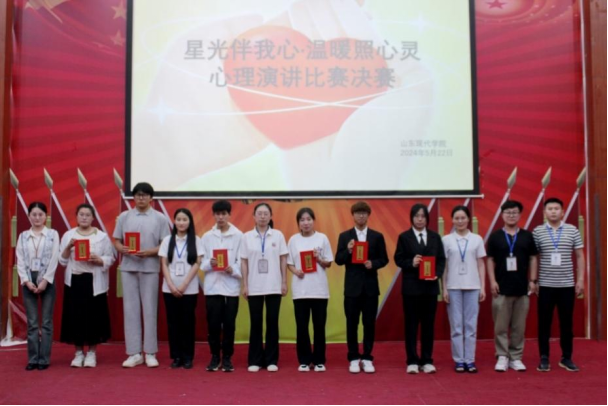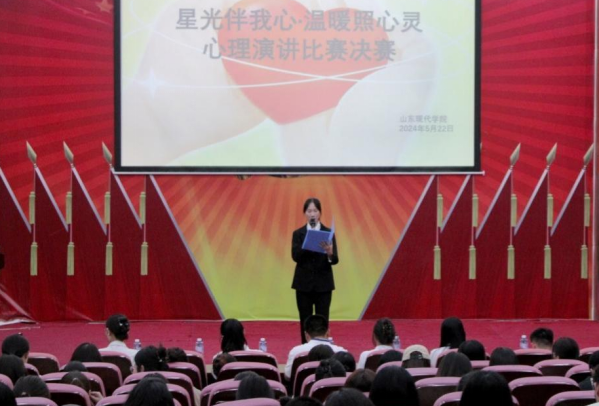 为加强同学们对心理健康的认识,增强同学们的心理调适能力,由山东现代学院学生处(大学生心理健康教育指导中心)主办,护理学院团总支承办的“星光伴我心·温暖照心灵”心理演讲比赛决赛于5月22日在博学楼101室举办。