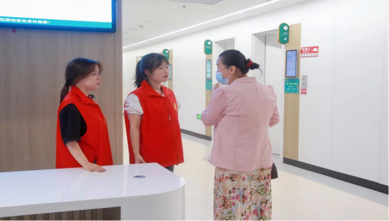 一组协助配合医护人员工作,帮助患者及家属做好挂号、缴费、打印检查报告等;另一组对患者及家属进行服务满意度调查,及时反映服务需求,调整服务态度。