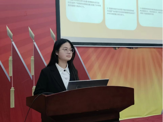 宣讲过程中,学生代表孙弋淼以通俗易懂的语言为学生具体讲解了非遗项目的精神内涵,并通过实物展示、现场演示等方式让学生更深入了解非遗的独特魅力。