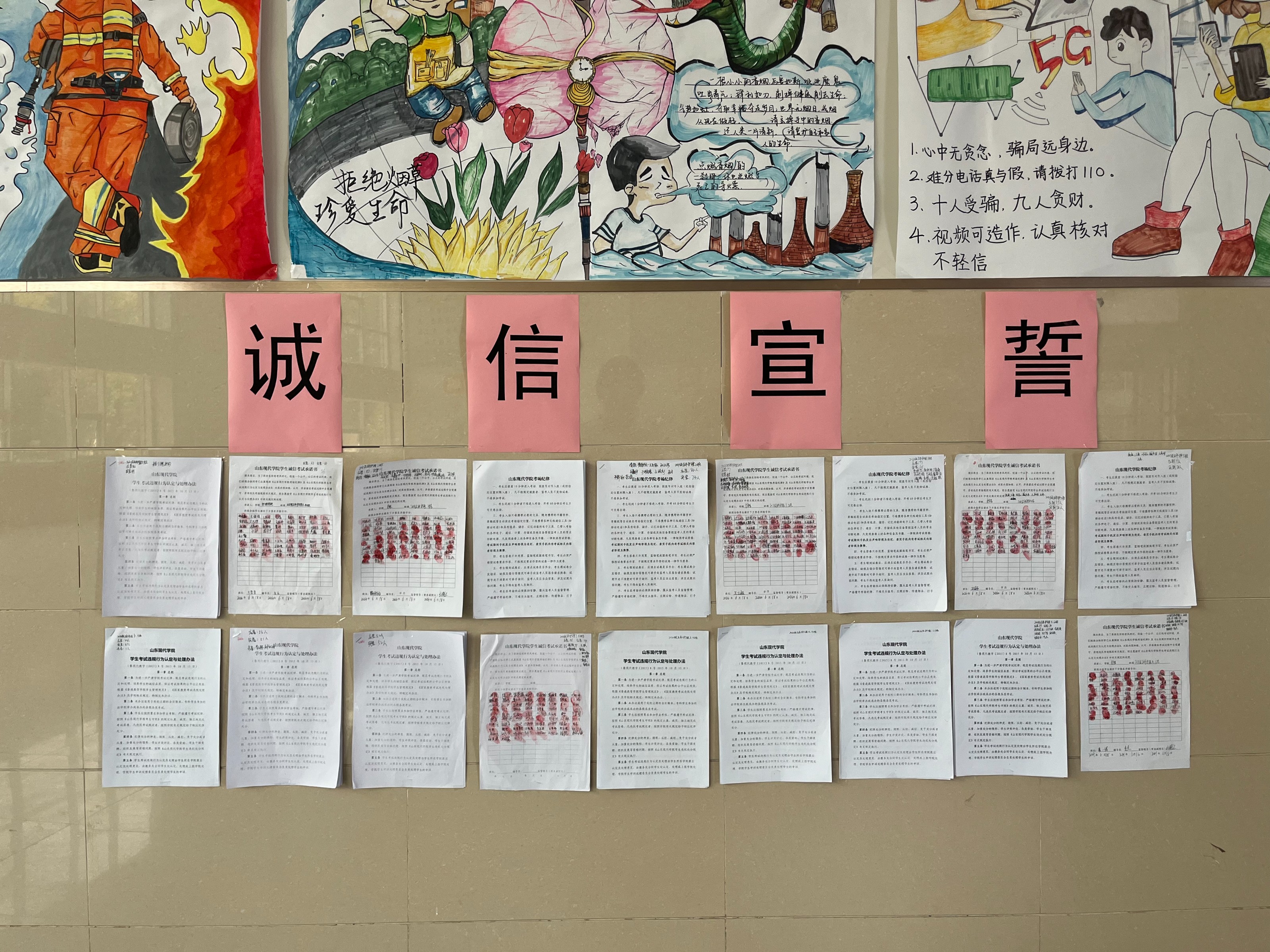 在宣誓结束后,同学们纷纷在诚信公约上郑重签下自己的名字。这份公约不仅是同学们对诚信考试的承诺,更是他们对自己品德修养的坚持与追求。