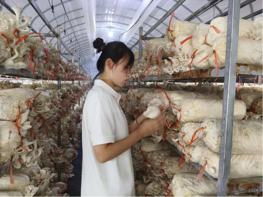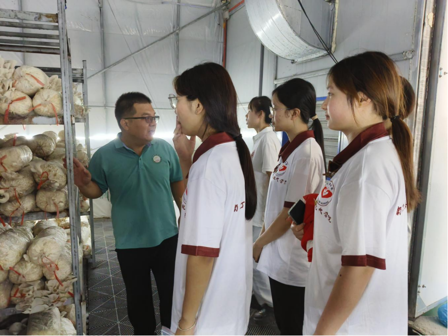 在专业指导人孙廷震的带领下志愿者们来到了当地的菌种基地,映入眼帘的是一排排整齐划一的培养袋,在培养袋里生长着各种各样的蘑菇。孙老师详细讲解了蘑菇的种植技术,从菌种的筛选、培养袋的制作、温度湿度的控制到病虫害的防治,每一个细节都透露出现代农业科技的智慧与精准。这次经历不仅让志愿者们对农业有了更深的认识,也激发了他们对农业科技的兴趣与探索欲。