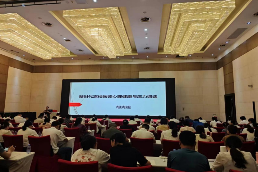 下午,天津职业技术师范大学职业教育学院心理系主任胡克祖教授作“新时代高校教师压力应对与心理建设”精彩讲座。