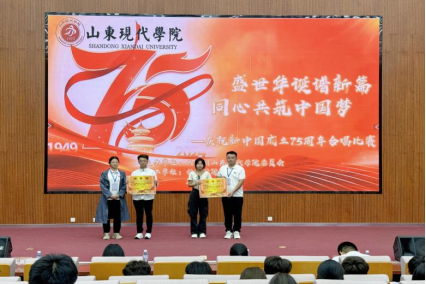 为庆祝中华人民共和国成立75周年,弘扬爱国主义精神,展现新时代青年的风采与活力,由山东现代学院举办的“盛世华诞谱新篇·同心共筑中国梦”合唱比赛于9月28日在图书馆报告厅举行。
