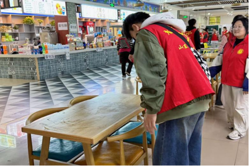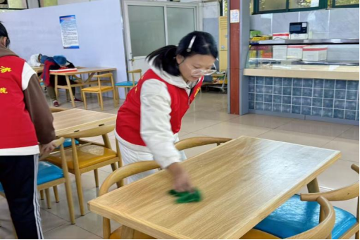在餐厅的服务区域,同学们认真地回收餐具,将餐具收拾规整;在餐厅清洁区,同学们拿起扫帚和拖把,仔细清理着地面。经过同学们的辛勤劳动,餐厅的环境焕然一新,为师生们营造了一个更加舒适、卫生的用餐环境。