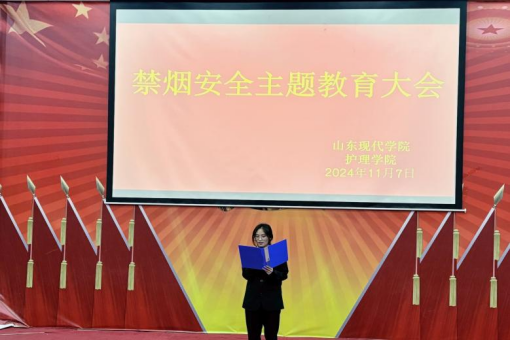 随后护理学院学管就业秘书助理邹林君上台,宣读《山东现代学院禁烟公约》及《关于消除火灾隐患,创建绿色无烟校园的规定》。邹老师强调,禁烟不仅关乎个人健康,更是维护校园安全、提升校园文明程度的重要举措。她要求全体师生要深刻领会禁烟公约的精神实质,共同打造无烟、安全、和谐的校园环境。