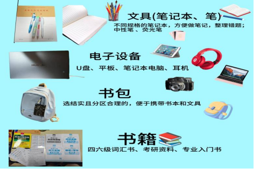 除了常规的笔记本、笔、文件夹外,有条件的同学可携带笔记本电脑,方便完成课程作业、查阅资料,但要提前了解学校的网络环境与电脑配置要求,建议安装常用办公软件(如Word、PPT)及专业学习平台客户端,便于课程使用。