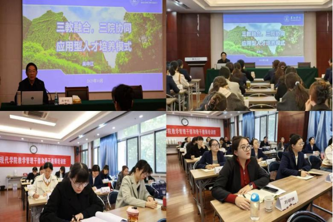 10月25日,原三江学院理事会副理事长、校长吴中江教授围绕“三教融合、三院协同,应用型人才培养模式”作专题报告,结合实例剖析应用型人才培养的关键路径,为学校探索应用型人才培养新模式提供了有益借鉴。下午,南京大学计算机科学与技术系博士研究生导师窦万春教授以“生成式人工智能在教育领域的创新应用”为题,深入解读生成式AI在教育场景中的前沿应用,引导教师思考如何借助新技术赋能课堂教学、提升育人效率,开拓了教学创新思路。