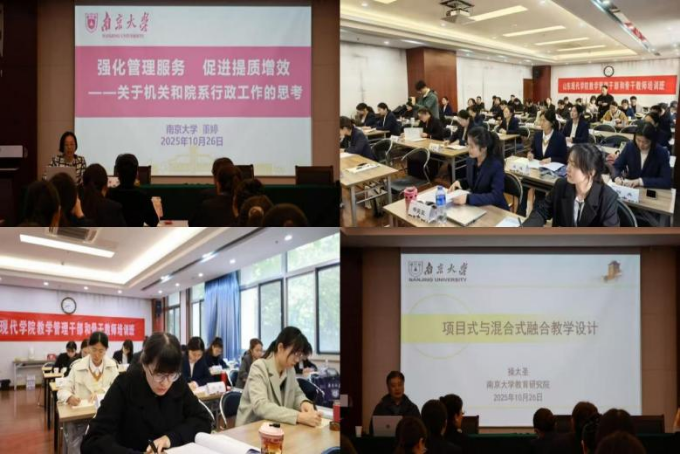 10月26日,研修进入收尾阶段。南京大学地球科学与工程学院党委书记董婷以“强化管理服务,促进提质增效——关于机关和院系行政工作的思考”作专题讲座,从管理服务角度为教学管理干部提供了提升工作效能的方法与路径;南京大学教育研究院、陶行知教师教育学院教授、博士生导师操大圣则围绕“项目式与混合式融合教学设计”展开讲解,为教师们优化教学设计、提升课堂教学质量带来新启发。