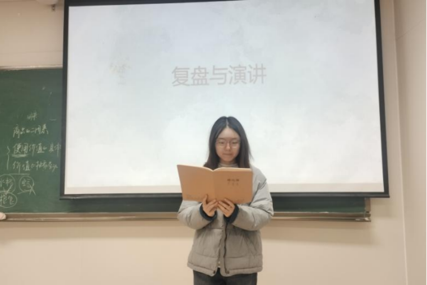 活动中,王越同学分享钱钟书先生的经典作品《围城》。他结合书中幽默犀利的笔触,深入剖析婚姻与人生的困境,揭示“城外的人想进去,城里的人想出来”的普遍心理,引发对人性执念的深刻反思。他鼓励同学们正视内心,摆脱外界干扰,珍惜当下,理性面对人生选择。