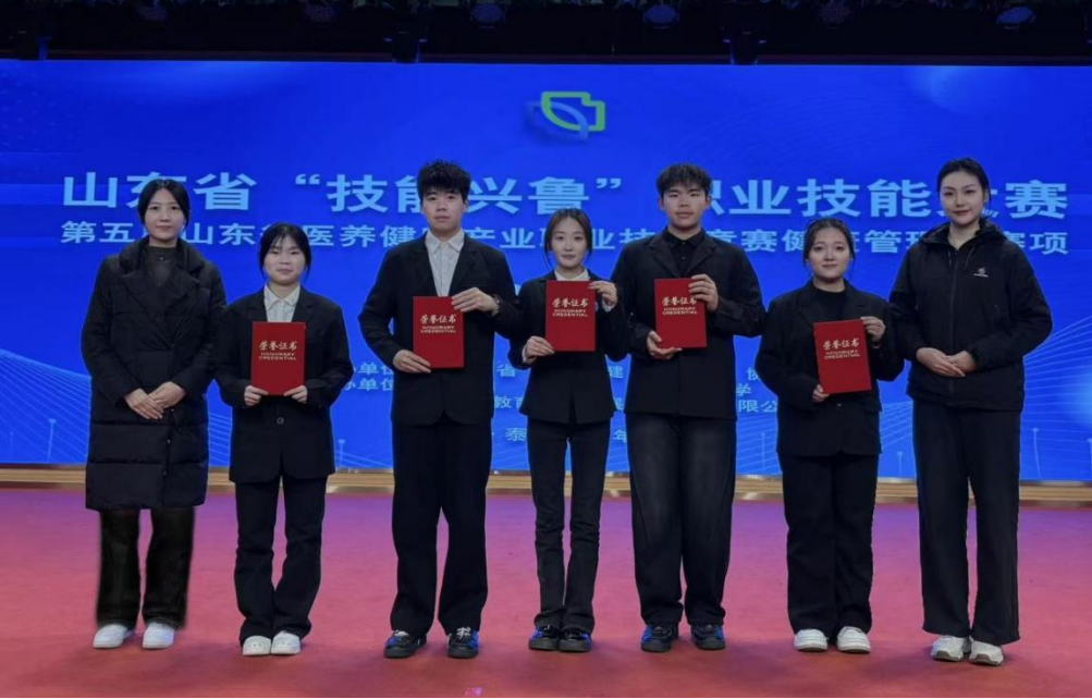 12月6日至7日,2025年山东省“技能兴鲁”职业技能大赛——第五届山东省医养健康产业职业技能竞赛“健康管理师”赛项在山东泰安圆满落幕。我校护理学院选派五名选手参赛,在朱珊璘、刘瑶两位指导教师的带领下,凭借扎实的专业基础和出色的实践能力,奋勇拼搏,荣获多项荣誉:袁子博同学荣获二等奖,王潇涵同学荣获三等奖,颜佳旭、周琪、陈泽坤三位同学荣获优秀奖。同时,我校因组织工作扎实高效,被授予“优秀组织奖”,充分展现了学院良好的教学水平和组织能力。