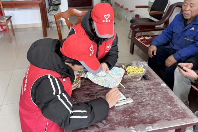 活动伊始,志愿者们抵达社区后迅速投入,分工协作:同学们分成十一组,分别进入不同的老人家中,与老人促膝长谈、拉家常问冷暖,认真倾听老人的心声诉求。经过悉心交谈后,志愿者们围坐在老人身边,一起制作艾草锤并告诉老人日常使用的小技巧。小小的艾草锤,不仅是一份实用的养生礼,更装满了青年学子对老人的暖心牵挂。