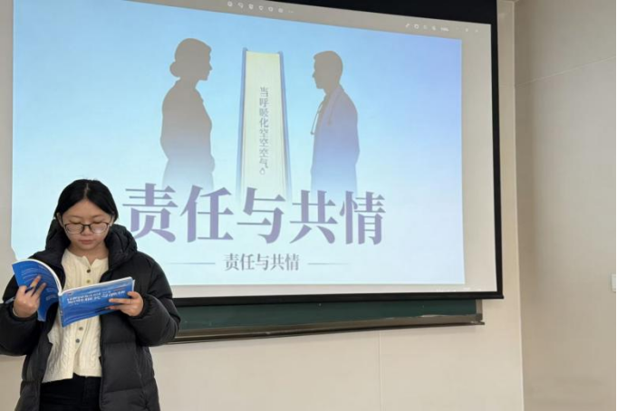 崔丽君同学以《当呼吸化为空气》为切入点,分享了神经外科医生保罗·卡拉尼什在生命终点前对医学、生死与人生意义的深刻反思。她结合作者从医者到患者的身份转变,引导大家体会医学不仅是科学,更是关于生命的关怀艺术。这一分享深化了同学们对“责任与共情”的理解,强化了临床工作中人文关怀的重要性。
