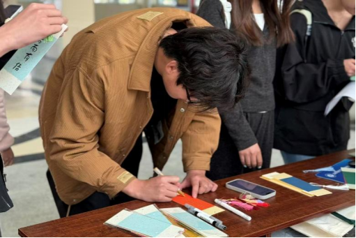 为明确新学期学习目标,凝聚奋进力量,引导同学们锚定成长方向、树立奋斗信念,护理学院于4月13日在博学楼大厅开展“巧手制书签·诚信记心间”书签制作活动。